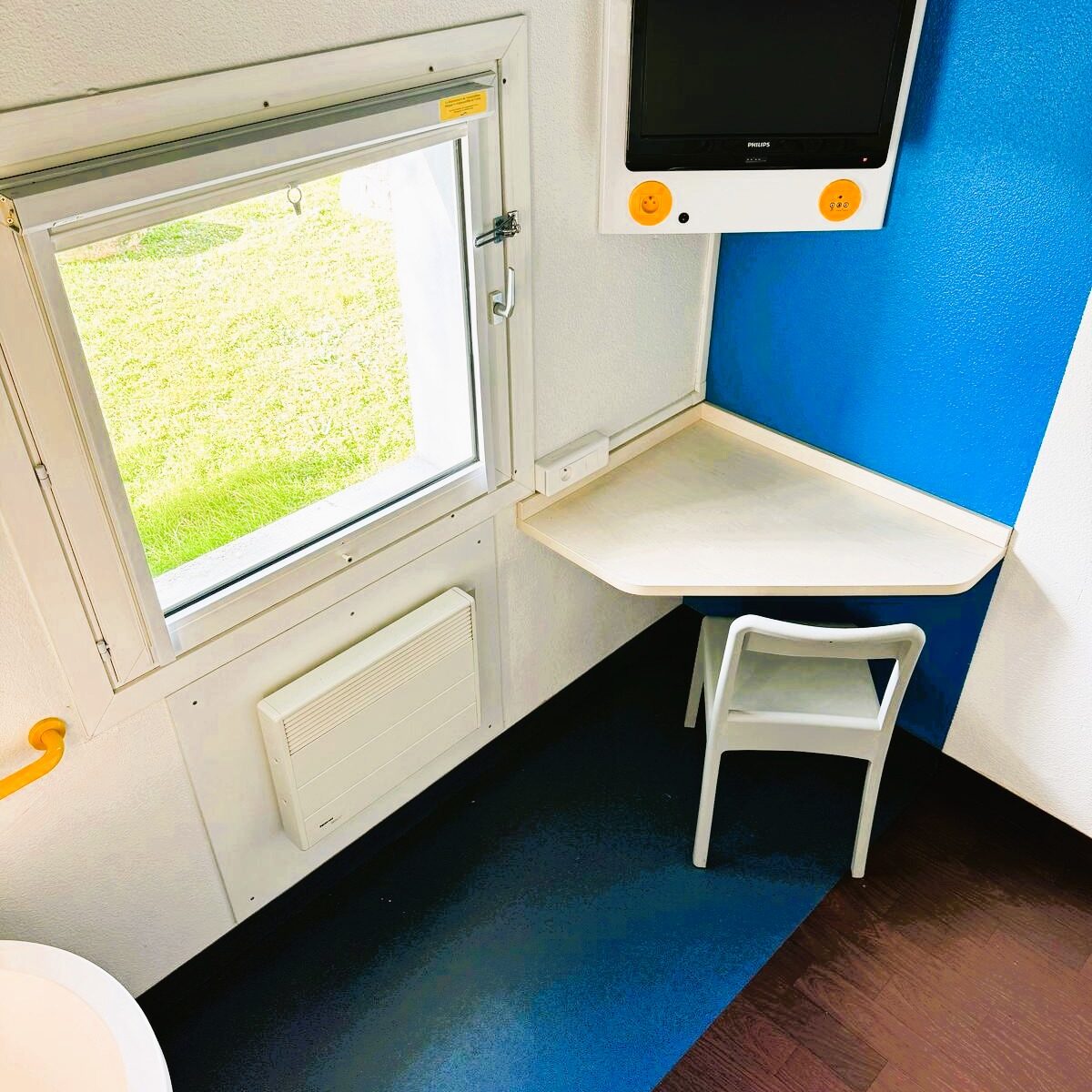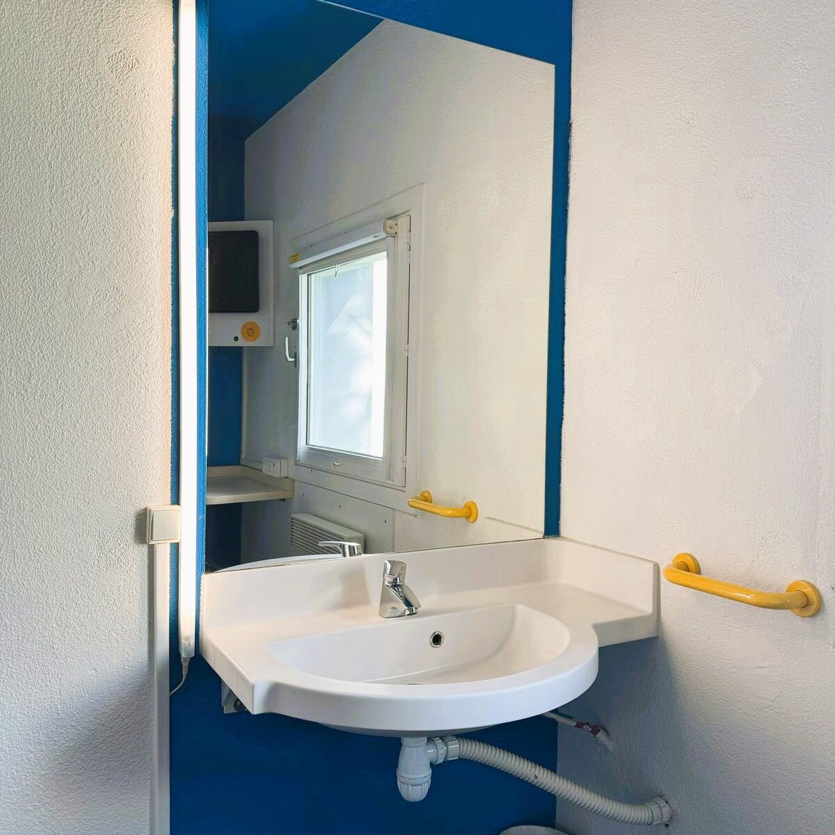 – salle de bains équipée pour les PMR réservée aux seules PM à l’extérieur de la chambre
